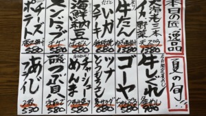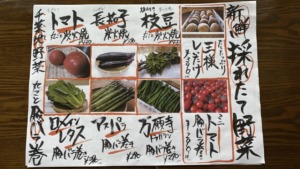 本日のオススメと、採れたて野菜のご案内です。
