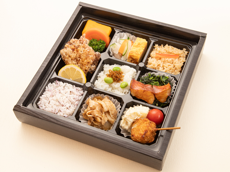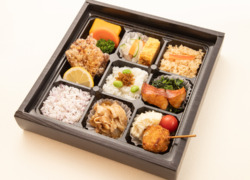 19.三種のごはんとまぐろ串カツ・赤魚の照り焼き幕の内仕出し弁当 1,480円(税込) 揚げ物がお好みの方のために、まぐろ串カツと鶏唐揚げを添えた味豊かな9枡幕の内タイプのお弁当です。 数量: - + 前のページに戻る