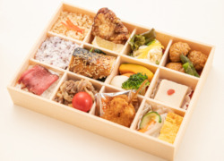 25.ローストビーフごはんと牛すき煮・まぐろ串カツのプレミアム旬菜12枡仕出し弁当 2,380円(税込) 和乃花の手作り旬菜をたっぷり盛り込みました。多くの方にお喜びいただけるプレミアム旬菜12枡の幕の内タイプのお弁当です。 数量: - + 前のページに戻る