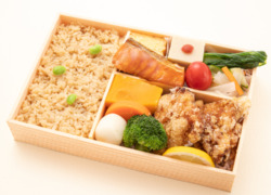 05.鯛出汁ごはんと鮭の幽庵焼き・鶏唐揚げ幕の内仕出し弁当 1,080円(税込) 鯛のあらを丁寧に水から煮出して出汁をとり、ふっくらと炊き上げた鯛出汁ご飯に、柚子(ゆず)風味のたれにつけ、香ばしく焼き上げた鮭の幽庵焼き、じゅわっサクサクな伝統の唐揚げをぜひご賞味ください。 数量: - + 前のページに戻る