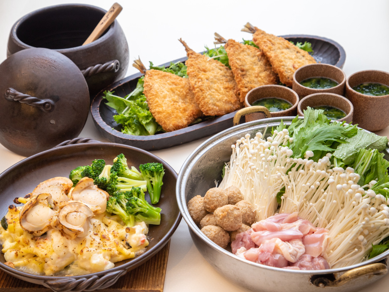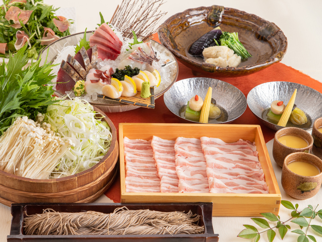 【2時間飲み放題】房総豚の出汁しゃぶと大漁鮮魚の刺し盛りが入った冬の味覚づくしコース(7品)
