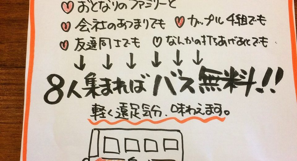 【8人集まればバスが無料!!】