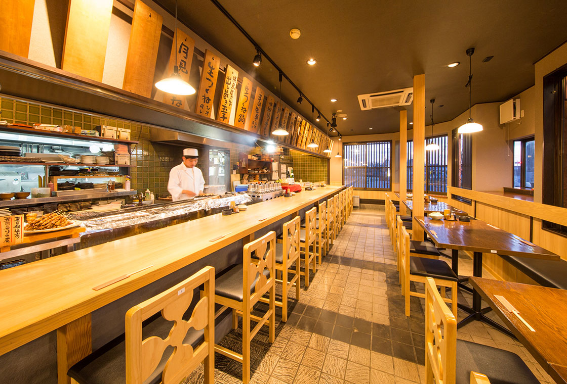 カウンター席でのご利用も当店の魅力! 一人でのんびり飲みたい時に是非ご利用下さい!目の前での調理を見るだけでその迫力に圧巻の一言!炭火で焼いた焼き鳥など一品料理も盛りだくさん!日本酒をはじめとしたお酒も数多くそろえております!