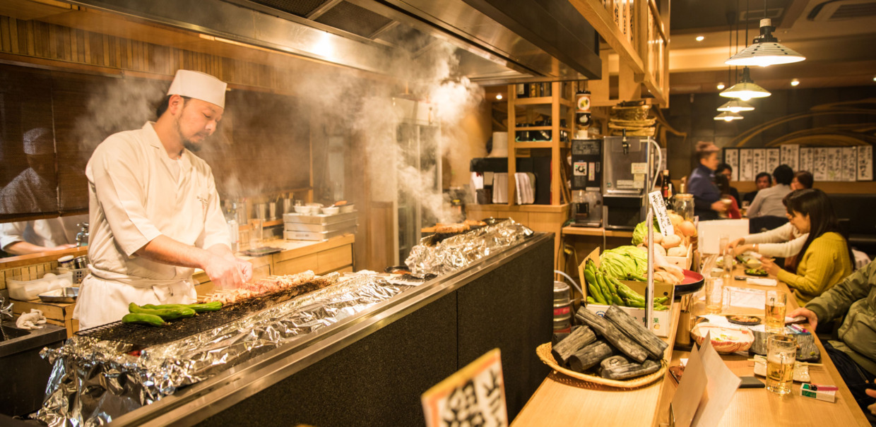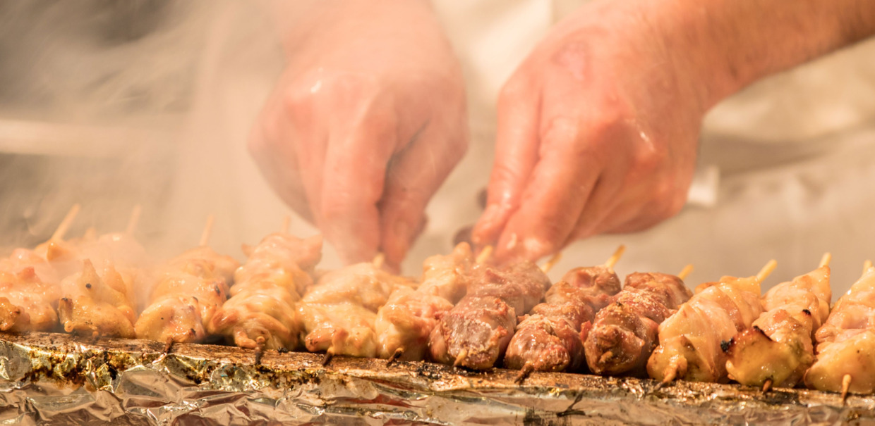 焼き鳥の美味しそうな香りが食欲をそそる、
